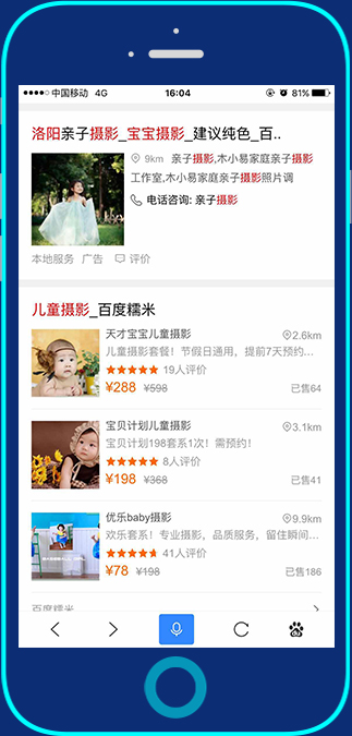 一種高效獲取顧客的新型推廣方式 “手機百度””“百度糯米”兩大超級APP強勢引流,精準推廣周邊客戶,覆蓋5-30KM范圍
